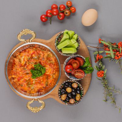 Ezine Peyniri, Tulum Peyniri, Çeçil Peyniri, 2 Çeşit Reçel, Siyah Zeytin, Yesil Zeytin, Bal, Kaymak, Nutella, Tereyagi, Acuka, Çeri Domates, Salatalik, Biber, Sucuk, Patates Kizartmasi, Jambon, Sahanda Yumurta, Simit, Paçanga Böregi, Sınırsız Çay